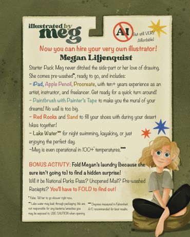 Available for all Kid Lit related projects, Megan works with both traditional publishers and private clients alike. She is especially keen to take on picture books, non-fiction, and cover art inspired by nature, history, and mythology topics.